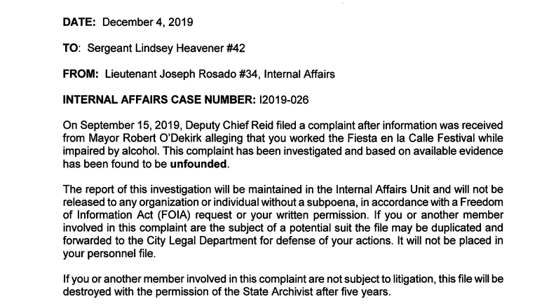 The mayor told Patch that month that several people contacted him on the day of the Mexican fiesta, concerning Heavener being on duty at the fiesta and possibly consuming alcohol from a plastic red cup at the tequila bar set up in downtown Joliet across from the Rialto.
