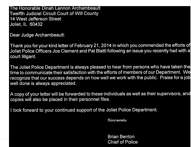 The letter was written by Illinois Fraternal Order of Police Labor Council General Counsel Tamara Cummings and Joliet Police FOP Lodge President Mike DeVito "to express concerns we have with the current disciplinary process."