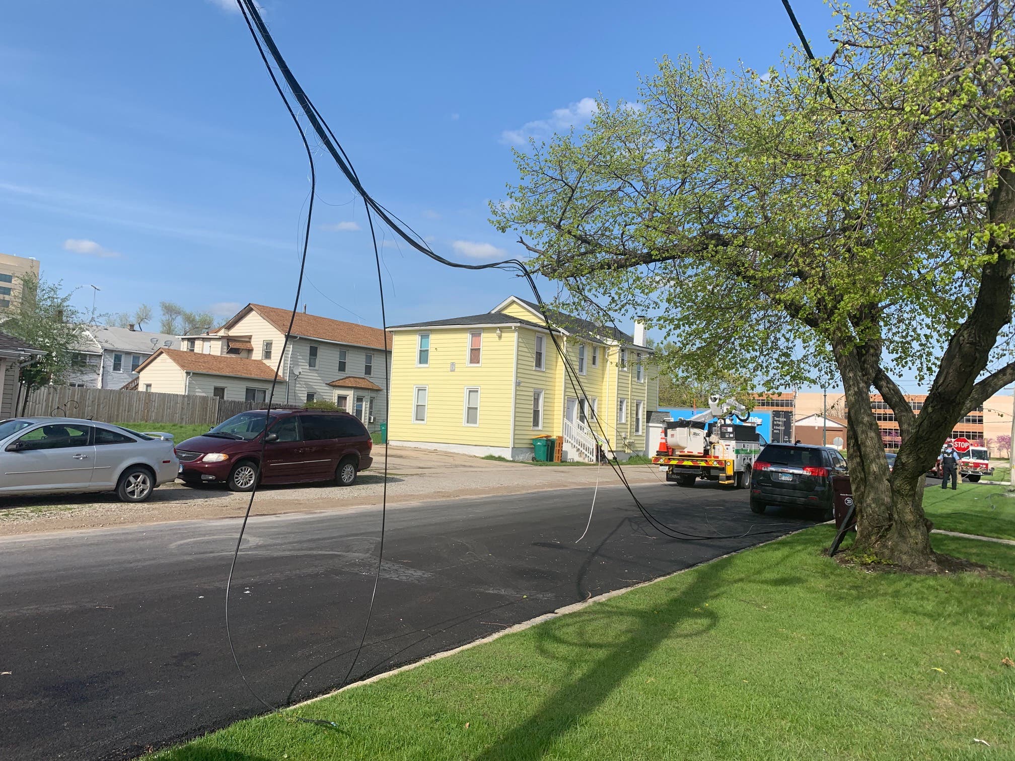 Joliet police officers, Joliet fire engines and ComEd converged on Dekalb Street after an Amazon Prime truck downed several utility lines.