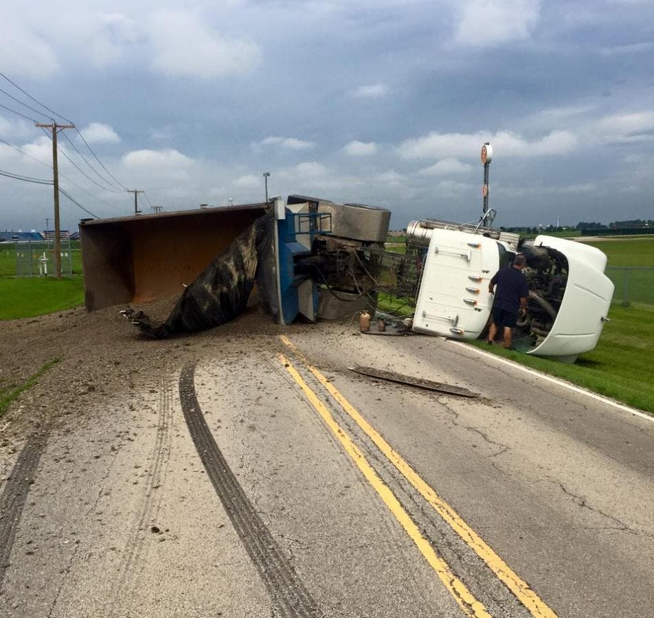 Joliet, IL — A semi traveling on Schweitzer Rd. east of Route 53 overturned Monday morning, spilling a load of dirt onto the road.