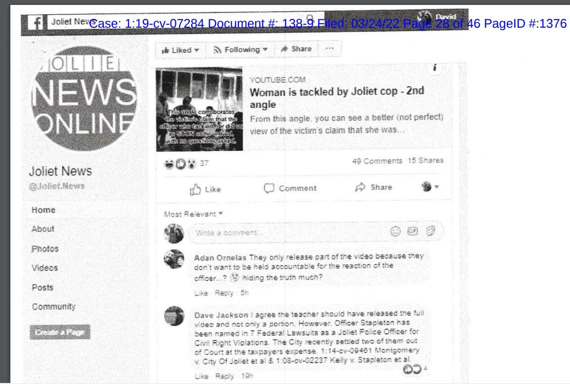"We argued in our motion that Joliet and certain of its employees seem to believe they are above the law and have shown repeated behaviors flaunting evidence preservation and failing to comply with their discovery obligations and our firm won’t stand for it," Jackson's attorney Stacey Vucko wrote Joliet Patch on Thursday. "We will get to the truth.”
