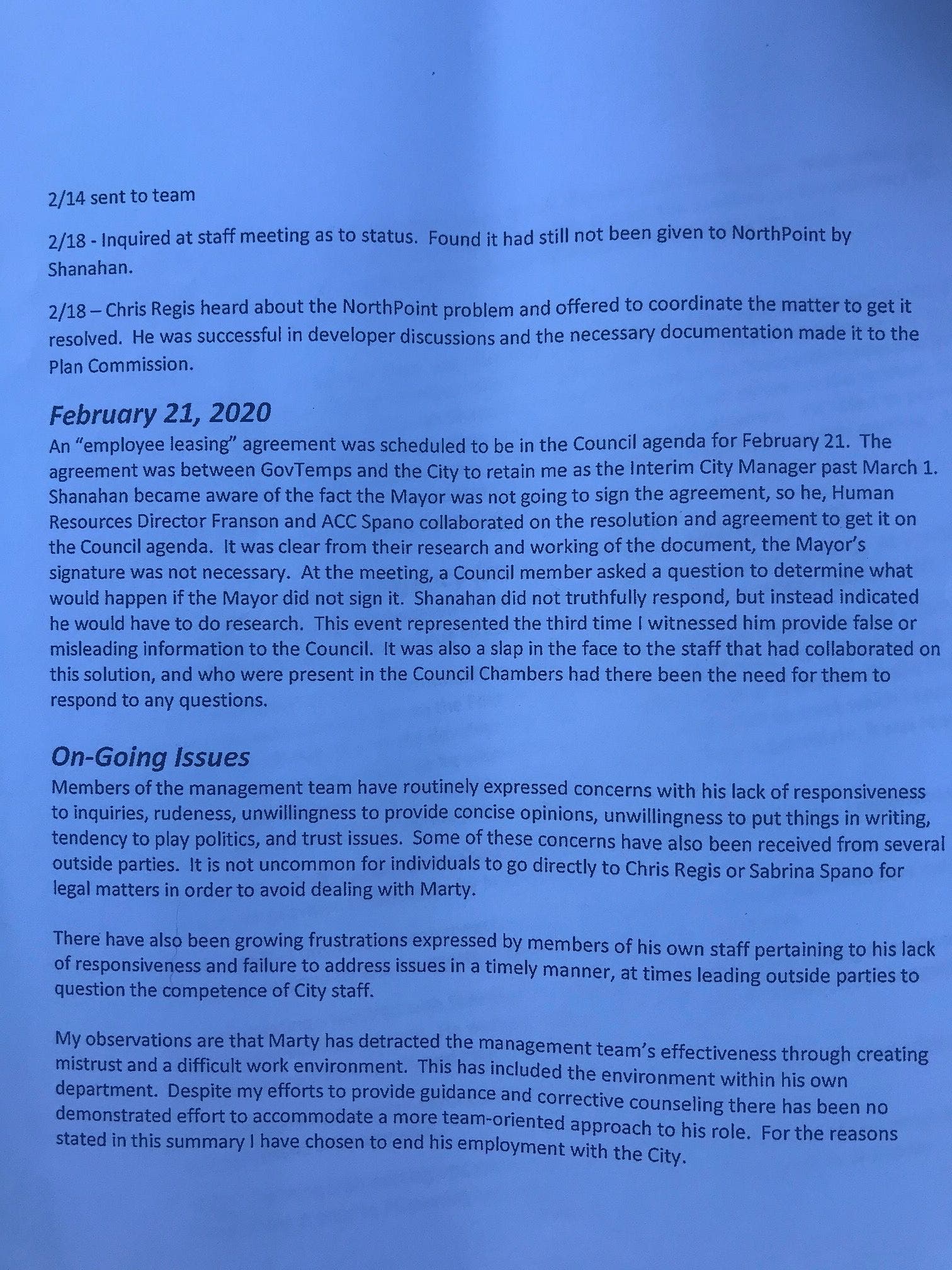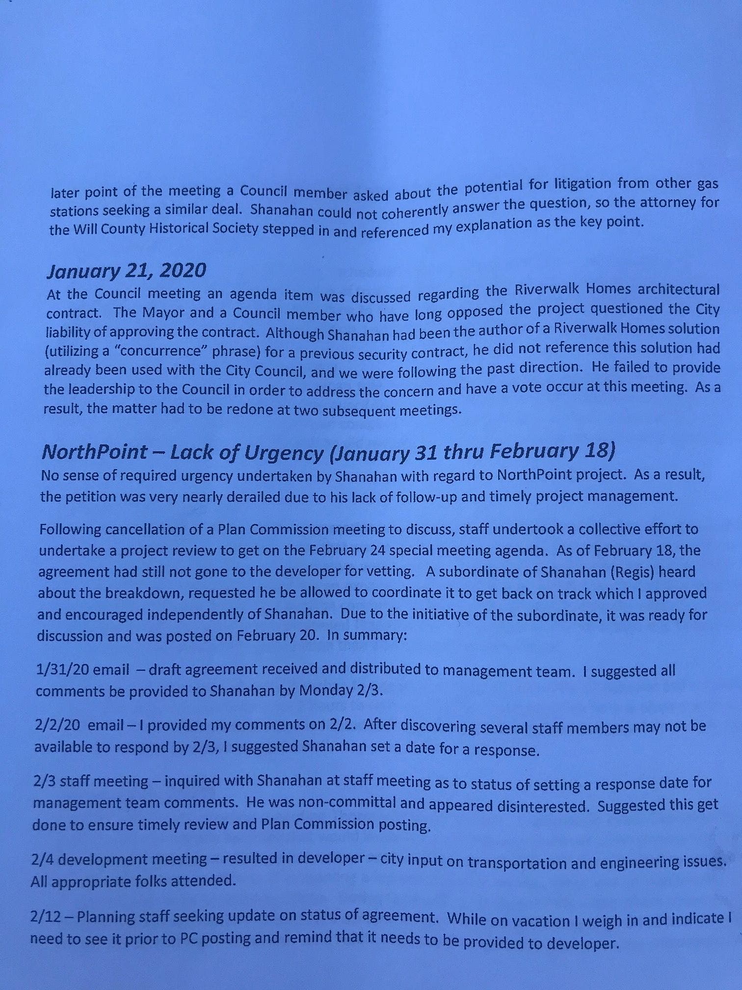 June 12, 2019 —Shanahan got five separate emails from Joliet City Council members requesting that he put an item on the meeting agenda to vote for his removal as interim city manager.