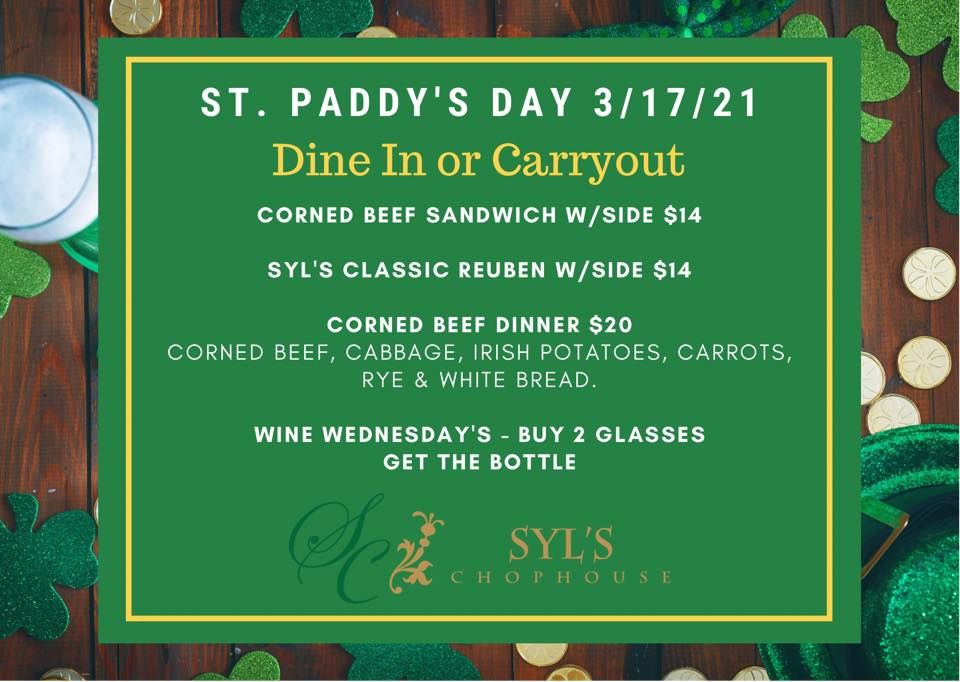 Specials for the week: Corned Beef and Cabbage Dinners $14