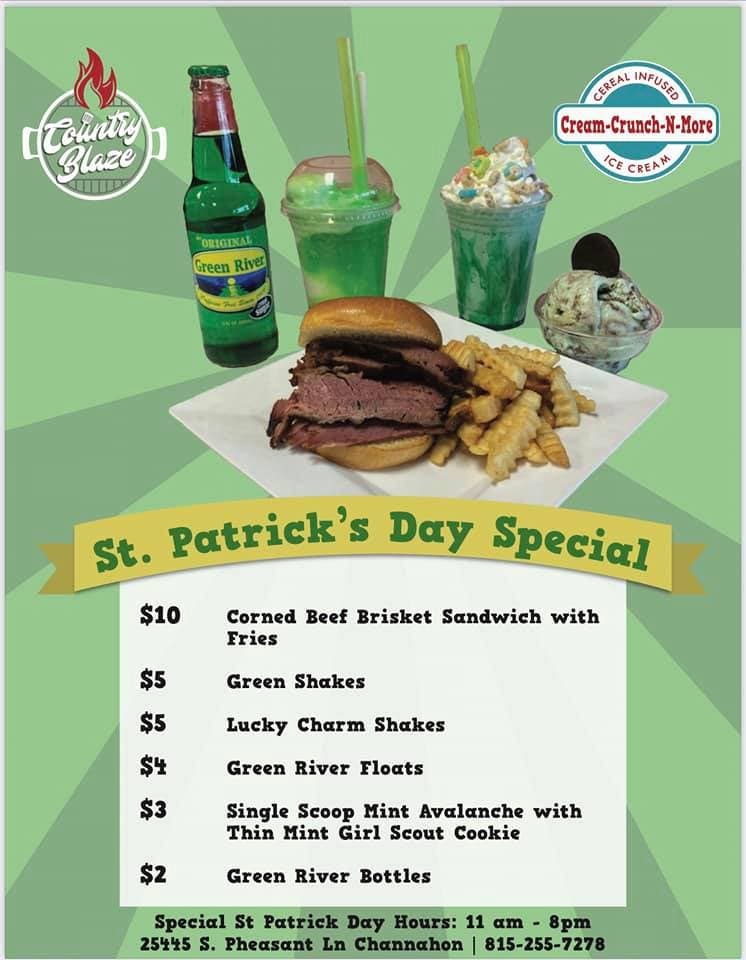 Country Blaze and Cream-Crunch-N-More in Channahon: Open St. Patrick's Day 11 a.m. to 8 p.m.