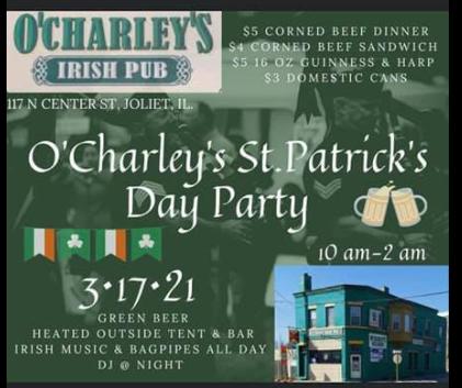 For drinks, O'Charley's Irish Pub on North Center Street is another long-time tradition on St. Paddy's Day for Joliet area revelers. O'Charley's will be open from 11 a.m. to 2 a.m.