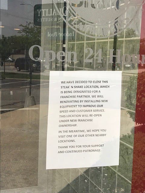 A loyal Joliet Patch reader brought this week's development to our attention. And, sure enough, a sign on the empty restaurant's front door urged hungry customers on Wednesday to visit one of the other Steak 'n Shakes in the area. The sign also gives people the impression that perhaps somebody will come forward and acquire the property to make it a local franchise.