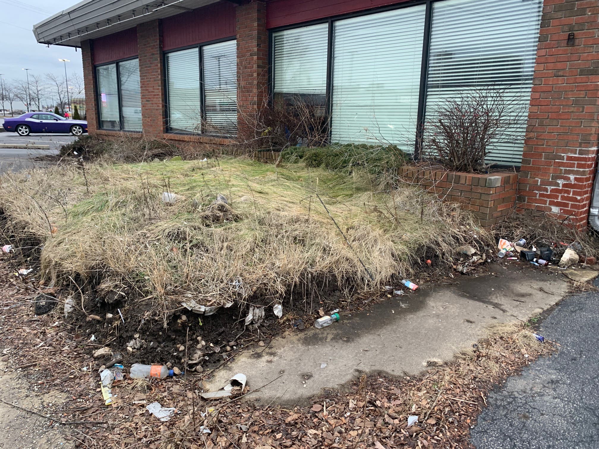 Windows are broken. Trash is littered throughout the property. Exterior parking lot lighting is smashed. It's even possible that homeless people are staying inside the property.