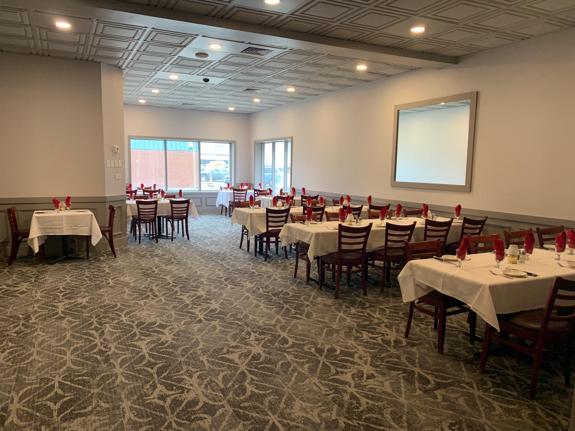 The larger room can accommodate about 90 guests. The smaller banquet room, toward the front of the restaurant facing Moen Avenue, seats about 40 guests.