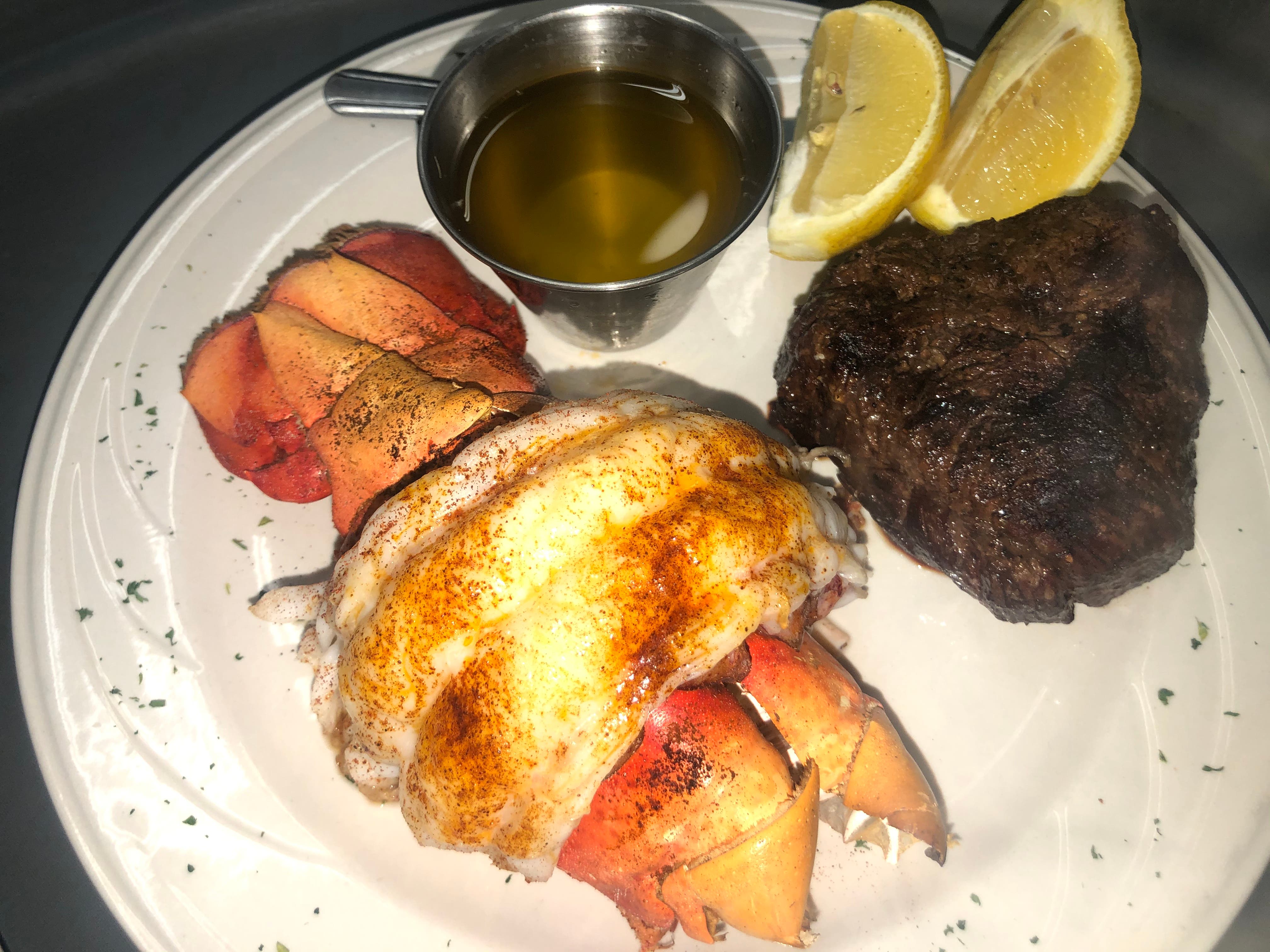 Tuesday's special is 20 percent off your tab. Wednesday, if you buy a steak, you can add a lobster tail for $20. Thursday, if you buy a steak, you get six complimentary shrimp.