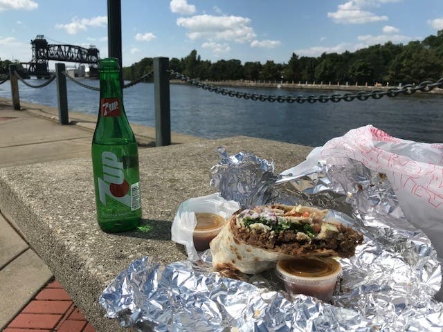I love to eat Mexican, but I tend to stick with burritos, steak burritos, and I want good ones. I played it safe at the Taco Truck and ordered the Asada (steak) burrito. Needing something to drink, I ordered a 7 UP. I didn't realize the soda is served in vintage glass bottles, which is pretty cool.