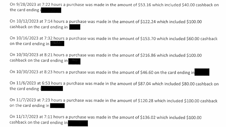 "Ted advised he would make a purchase knowing he could get cash that way and say, 'Oh, I got an extra hundred dollars coming out that way," the detectives noted. "Ted acknowledged there are a few of those that he did.