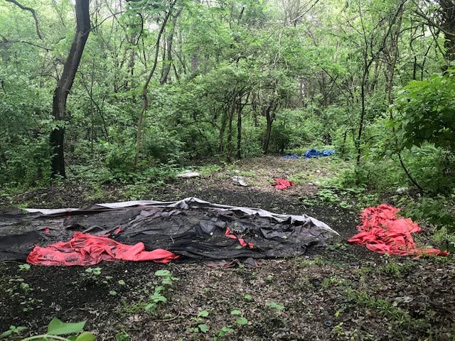 For safety reasons, my guide suggested that we turn back and not continue deeper into the Tent City forest. My guide has known a number of homeless people around Joliet who have chosen to live at Tent City over the years, but there are also several other people who end up there who are hardened ex-convicts, who could be armed with weapons.