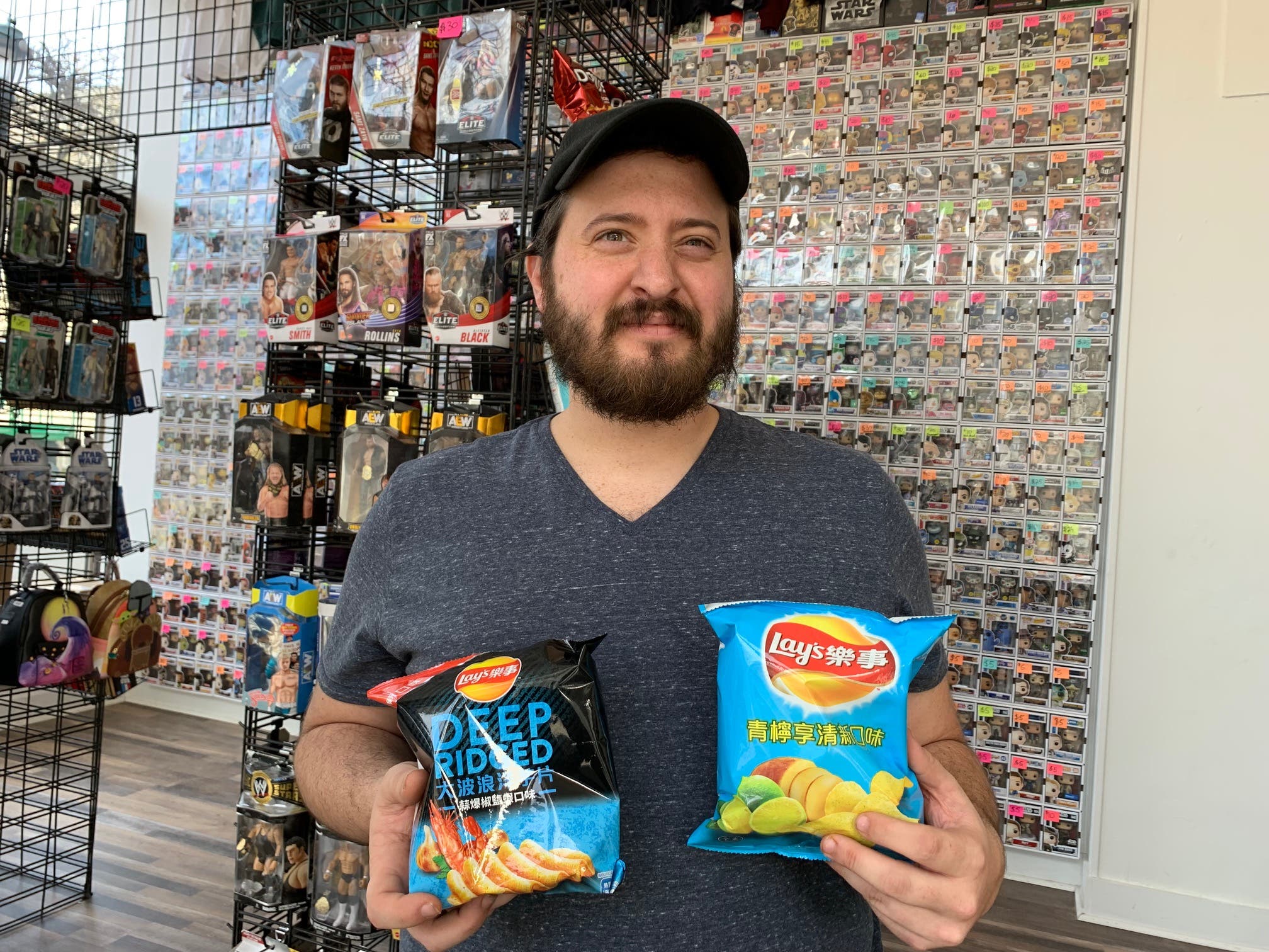 In addition to thousands of vintage toy action figures including Star Wars, G.I. Joe and X-Men, there's also exotic potato chips including lemon, fried shrimp and seaweed flavored.