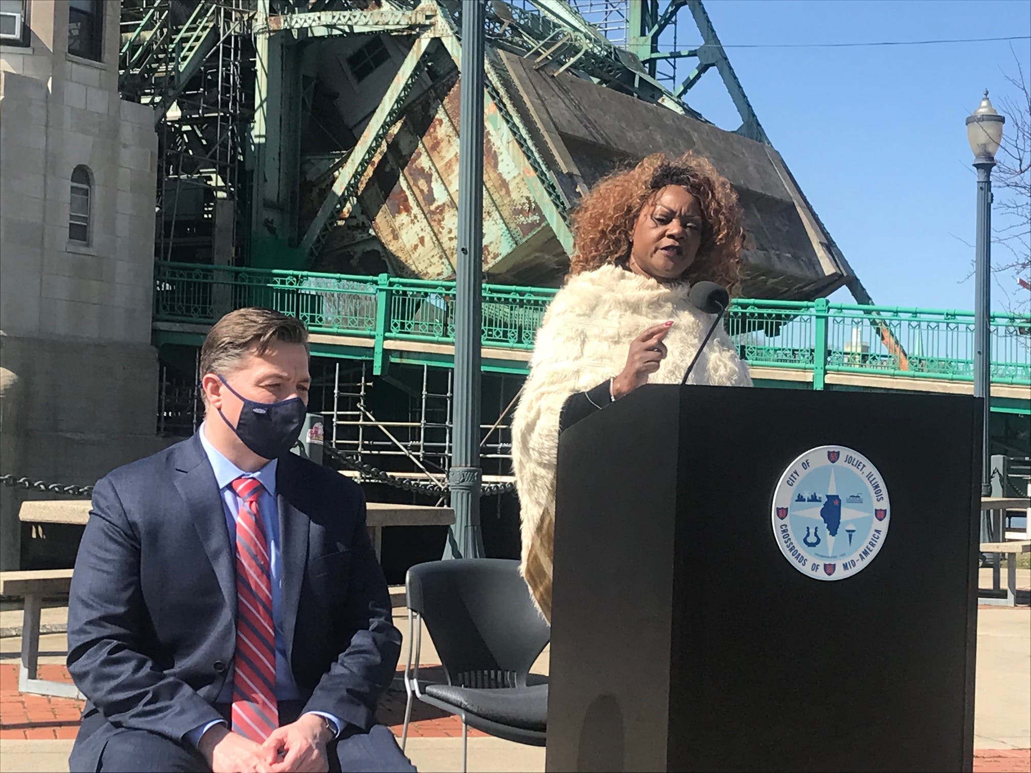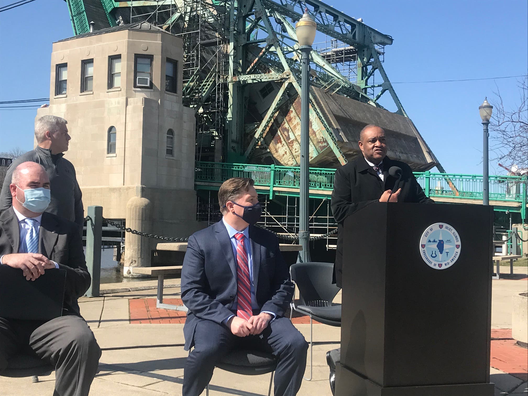 About 50 people attended the mayor's news conference overlooking the Joliet canal. Other speakers included Mike Paone from Joliet's Chamber of Commerce; Megan Millen, Joliet Public Library executive director; Doug Pryor from Will County Center for Economic Development; Greg Peerbolte, director at the Joliet Area Historical Museum; Val Devine, director of the Rialto Square Theater; Judy Mitchell, president of Joliet Junior College, and John Wilson, a representative from the Joliet Slammers independent league baseball club.