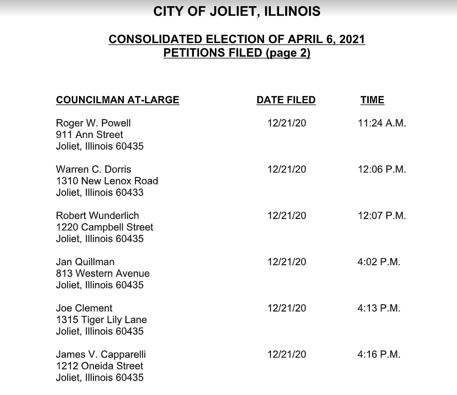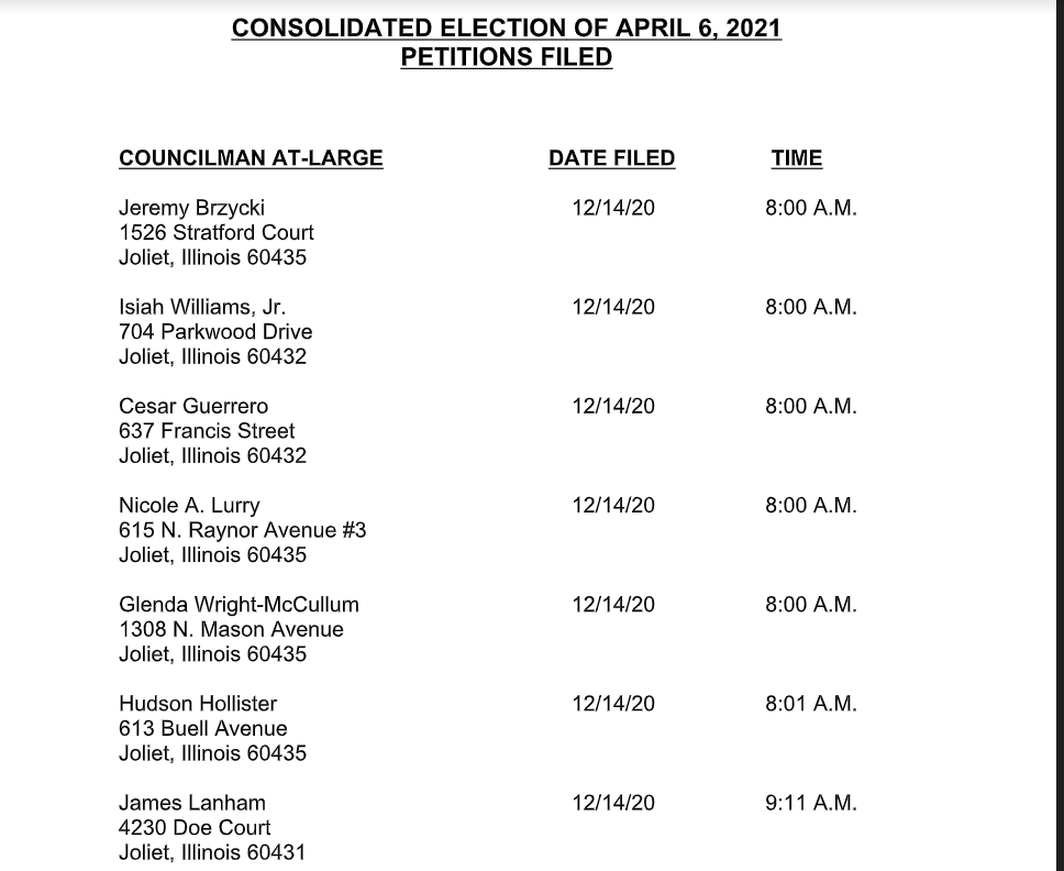 Monday afternoon marked the deadline to file candidate petitions for Joliet City Council. Here's who turned them in.