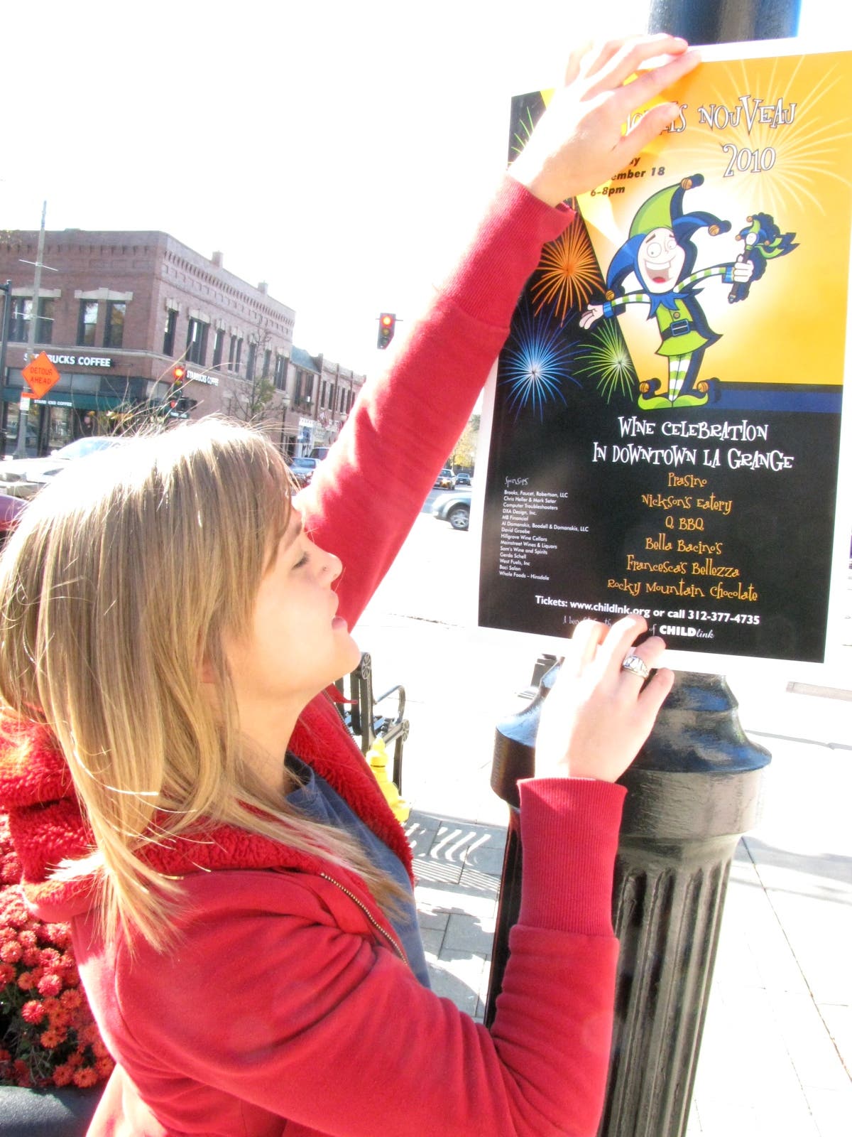Child Link has been pre-selling tickets to the event. When Kluszczynski was interviewed Nov. 5, she said she had about 60 tickets sold and would like to get 150 booked in advance. Armed with flyers and tape, Kluszczynski raised awareness of the event that Friday throughout downtown La Grange.