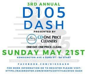 The District 105 Dash 5k and 1.5 mile fun run is sponsored by CD One Price Cleaners.