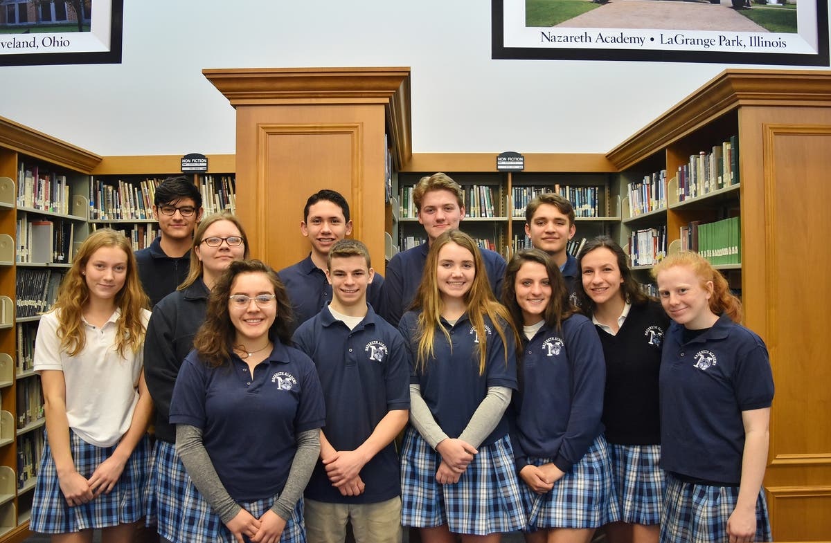 LA GRANGE PARK, IL — Twelve U.S. History Honors students from Nazareth Academy had their History Fair project move on to the Metro City Finals event at University of Illinois Chicago on April 12. According to the school, winners from the city finals will advance to the state finals.