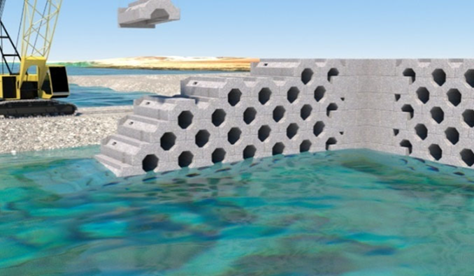 The current quay wall at Waukegan's inner harbor is no longer functional and needs to be restored or replaced, according to the description. But with new advances in dock design technology, wave-absorbing technology can be integrated into the plan for replacing the deteriorated wall.
