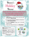 Benny's HOLIDAY Bazaar is a new annual event being held on Saturday, November 16th at CROYA, Lake Forest in support of Benny's World, CROYA and Kinderhaven Preschool Academy. It is open to any child in preschool through high school that creates something they would like to sell. It does not need to be completely handmade but it must have some handmade component. Some items children will be selling include, but are not limited to: jewelry, ornaments, bath products, photography, teacher/hostess gifts.