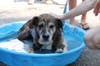 The first dog I saw when I arrived at the shelter’s booth was Balto, an 8-year-old Shepherd mix. This big boy is so laidback and gentle. Balto was the lucky dog who got to spend most of his time in the kiddie pool that was set up to keep them cool – and he would sometimes cool off the people petting him by getting up and shaking all the water off his fur!