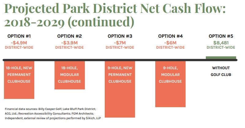 From 2006 to 2017, the club lost more than $3 million, audited statements show. It is projected to cost $5.4 million over the next 10 years, unless the board makes some changes. It has offered up a handful of options, involving possible adjustments to the course and clubhouse.