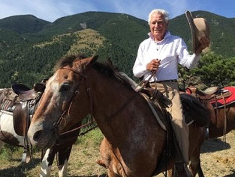 Hubby’s love for golf was perhaps only matched by his love for the West. During his life he visited many ranches, and in 1985 Hubby found his second home at Eatons’ Ranch in Wolf, WY. He visited several times a year and shared his fondness for Eatons’ with both his children and grandchildren. He was a familiar sight at the rail beside the barn, watching the horses come down in the early morning hours with a cup of coffee in hand. Hubby’s favorite horse was Rio, and as recently as last August he could be found guiding his family along the trails of his beloved South Red Canyon.