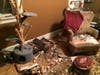 Photo Caption: John “Sinatra” Connors and his cat Oscar, along with the mysterious ice chunks that crashed through his ceiling sometime Tuesday morning, wrecking his living room.