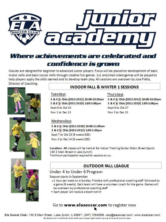 Ela Soccer Club Junior Academy Fall Registration Open