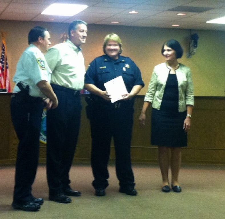 Gomoll presented the Lake Zurich Police Department and Sgt. Tracey Goodyear with an award for extra efforts related to distracted driving. Gomoll said those extra efforts help save lives.