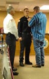 For the traditional pinning of the badge, Johnson chose his father, Greg Johnson to complete the honor.
