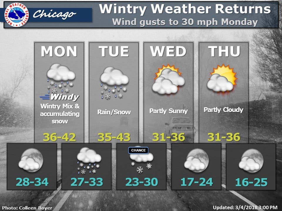 2-4 Inches Of Snow Possible Monday, 30 MPH Gusts: Chicago Weather