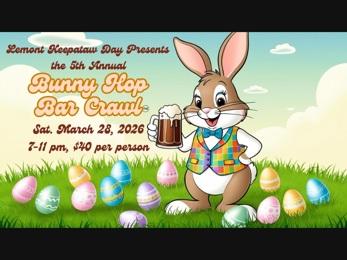 Lemont will welcome spring with a spirited night out as the Lemont Keepataw Day Committee hosts the 5th Annual Bunny Hop Bar Crawl on Saturday, March 28, 2026.