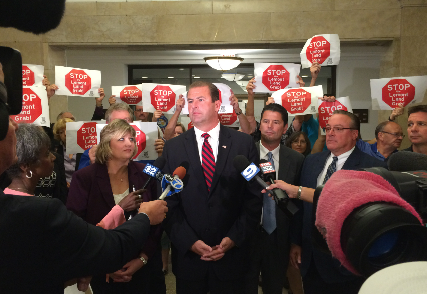 Mayor Brian Reaves fears annexation of those nearly 2,000 acres would ”split the village in half.” Roughly 50 Lemont residents attended the meeting to back Lemont’s cause.