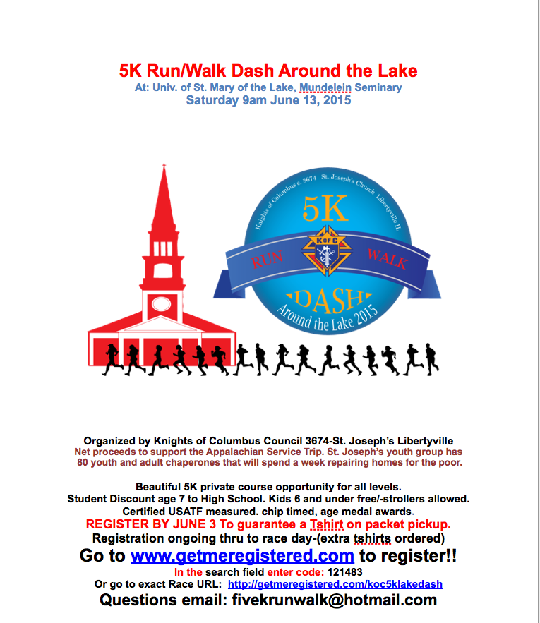Knights of Columbus team up with Saint Joseph's Youth Group for 5k race as fundraiser for Appalachian service trip
