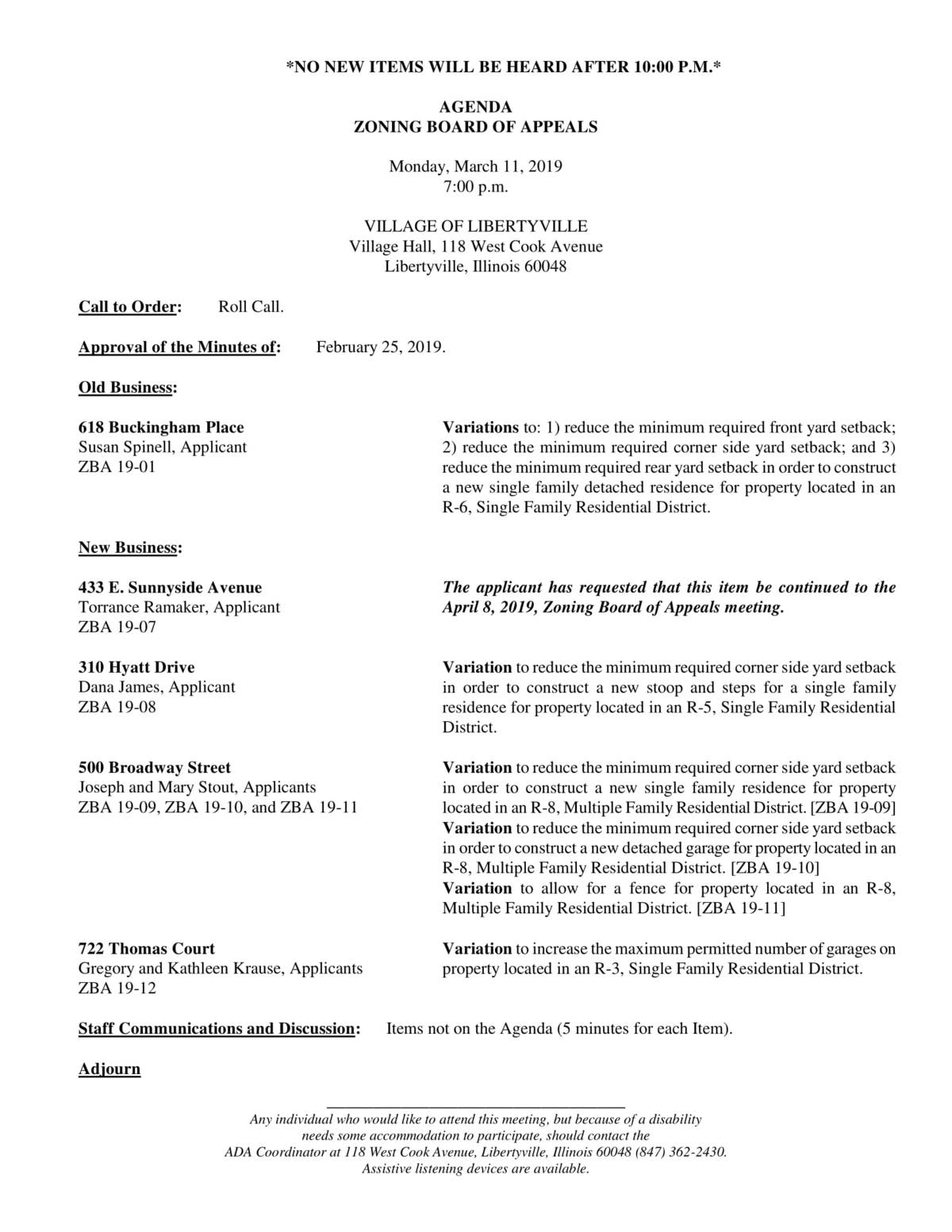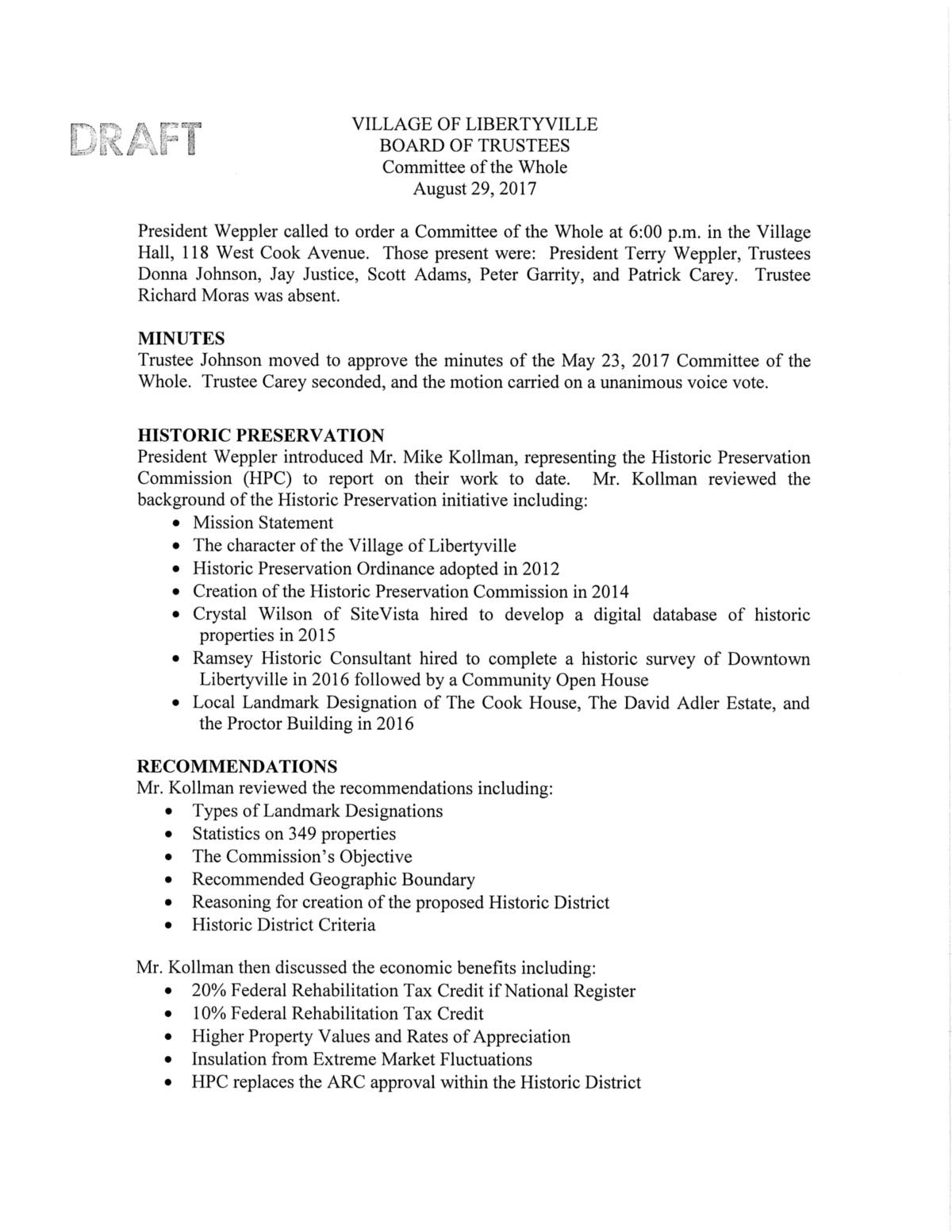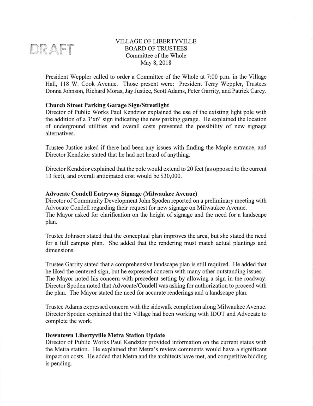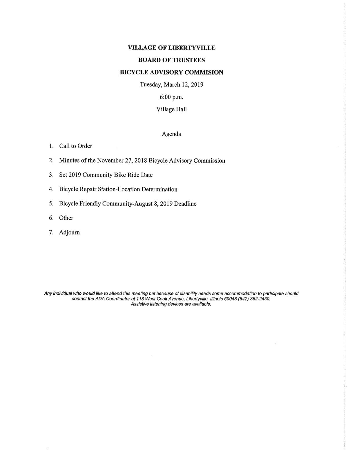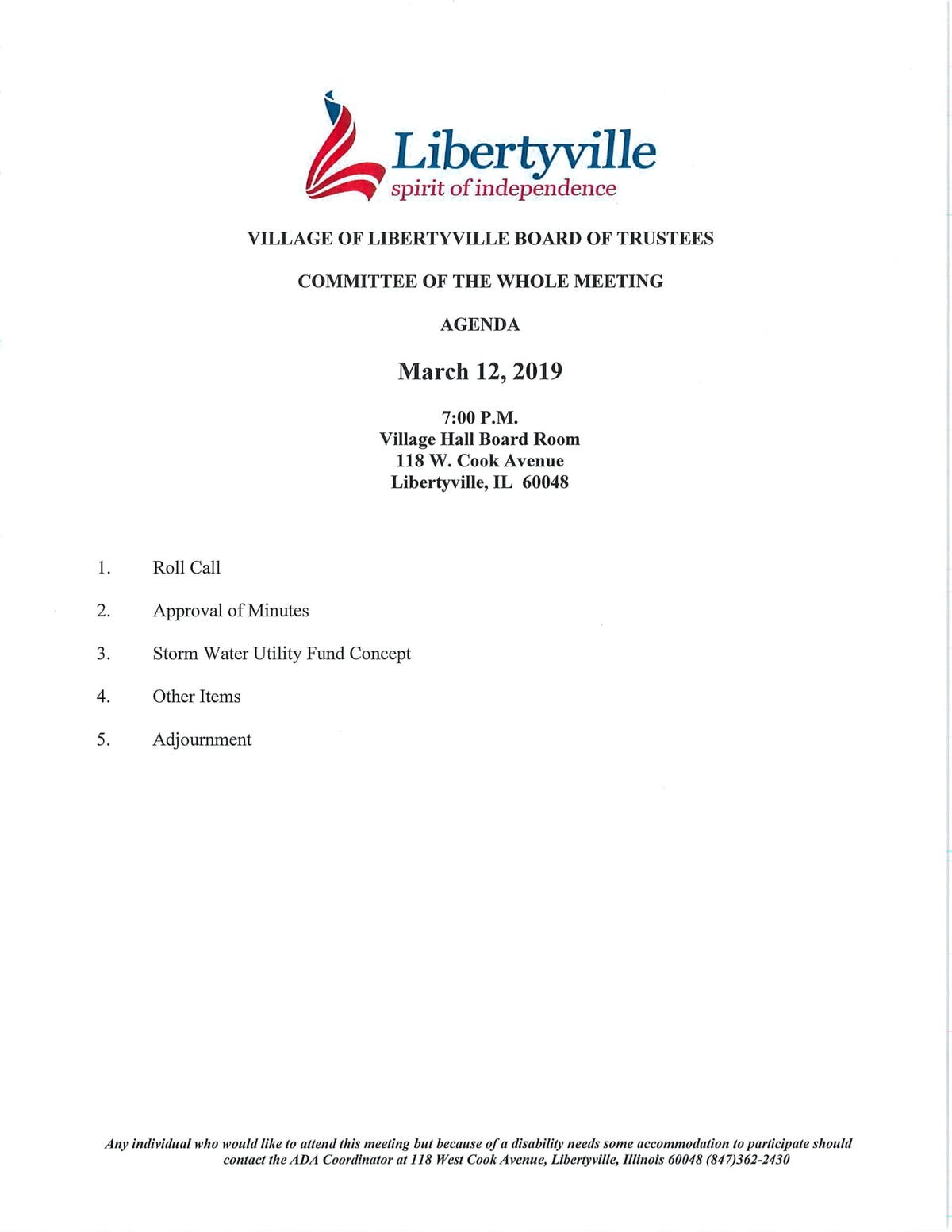 Village of Libertyville Agendas For Upcoming Meetings