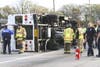 The bus flipped on its side and the students exited the bus through the rear emergency door. Traffic was closed for about 45 minutes due to the accident.