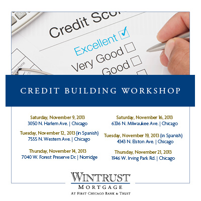 First Chicago Bank & Trust and Wintrust Mortgage will be hosting FREE Credit Building Seminars during the month of November at six locations.