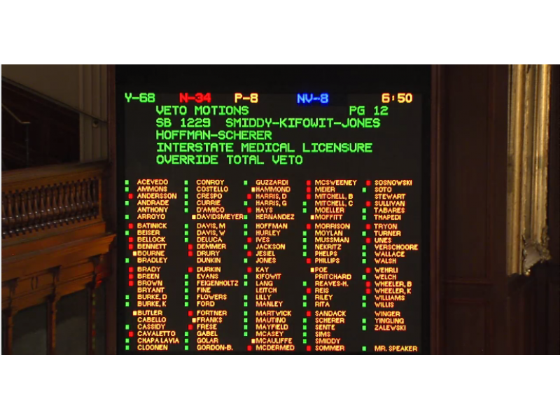 Chart shows roll call for Senate Bill 1229 both historically and for the veto override.