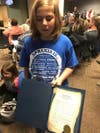 Tonight at the Village Board meeting there was a proclamation signed to make May 14, Apraxia Awareness day. Two of our children here in Manhattan that are affected by CAS were present in front of the Board and residents to receive copies of the Proclamation from Mayor James Doyle, and they are fifth grader Matthew Cernauskas and third grader Amber Crawford, I spoke to Amber's mom Debbie Smith about how CAS has affected their lives and she said , "I know first hand when you begin your journey with Apraxia so many questions go through your mind. All of the fears you have regarding the struggles they will face. The frustration and the helplessness. Not being able to understand your own child. Realizing there are so many other things that come along with them having Apraxia like doctor after doctor appointments, IEP's, sensory issues and muscle cramping. Trying not to smile when the teacher tells you she spoke out of turn. The day Siri finally understands her speech and it's like the biggest thing since Mac n Cheese!" When I talked to Amy Cernauskas, Matthew's mother, she said "Both of these children have fought so hard the past few years to go from being non-verbal to chatting away! We are so proud of them!" At the meeting Amber read a letter in front of a large crowd of onlookers. Matthew passed out Apraxia Awareness bracelets to the Board members and some of the kids in the audience, that read "One Word at a Time". After they were done they both received a very large applause from the crowd of Manhattan residents that were all just so proud of these two children also.