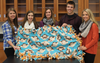Students Holding Blanket: Lincoln-Way West students Michaela Bulthuis, Deven Bax, Renee Propp, Nathan Scalone & Anna Pigney display the fleece blanket they made to donate to Lurie Children’s Hospital