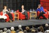 Matalin and Brazile — who are close friends — went back and forth in a discussion of presidential politics and campaign war stories in SXU's Shannon Center before a crowd of 1,000 people.