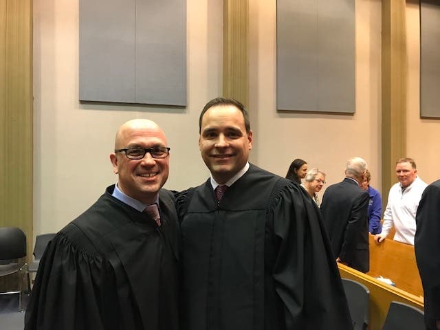 Judges Fred Harvey, at left, and Derek Ewanic, at right.