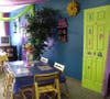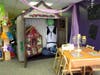 With an eye for color and a flair for decorating, McAuliffe and her son painted the party room with bright, bold shades, adding whimsical ceiling treatments and fanciful lighting that transport party guests into a magical world. During a Monster Mash party, children can choose their own plush monster to stuff. At a Madhatter Tea Party, guests make their own mad hats.