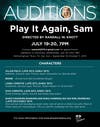 Upcoming auditions for PLAY IT AGAIN, SAM will be held at 111 N. Hale Street in Wheaton, July 19 and 20 at 7:00 p.m. Callbacks, if necessary, will be held July 22. Auditions will be by appointment only and auditioners should contact the Director, Randall Knott at samwdi2015@gmail.com for an appointment time.
