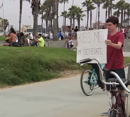 Several people took him up on his offer. Watch his YouTube video below from the kissing experiment.