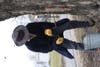 He then drilled a hole into the tree with a hand-held tool and, almost immediately, sap slowly began dripping. A special metal bucket to collect the dripping sap was attached beneath the hole and a lid was placed on top to keep out rain water and animals. There is no harm to the trees with tapping, he added, explaining that some trees can be tapped several times a year if they are large enough in diameter.