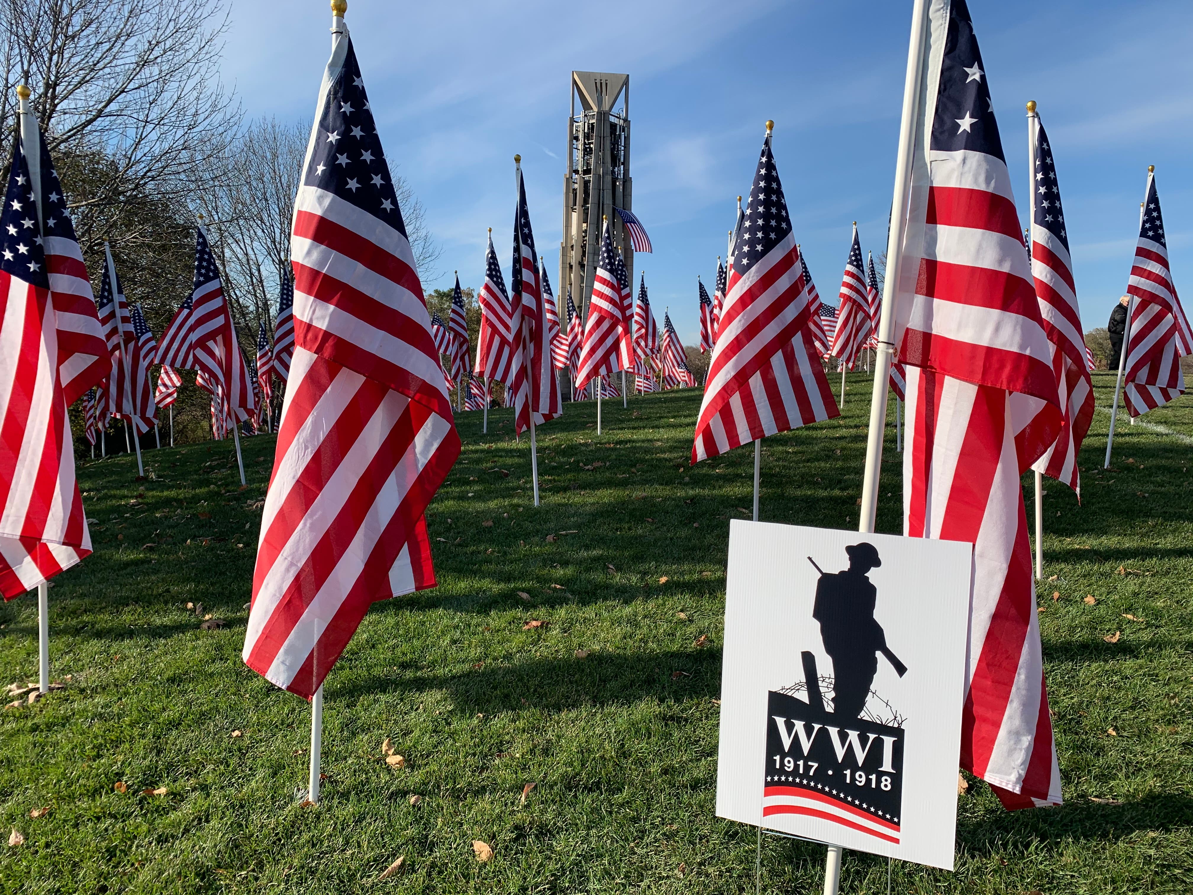 The 2019 Veterans Day Ceremony will be held at 11 a.m. amid a field of 2,019 American flags.