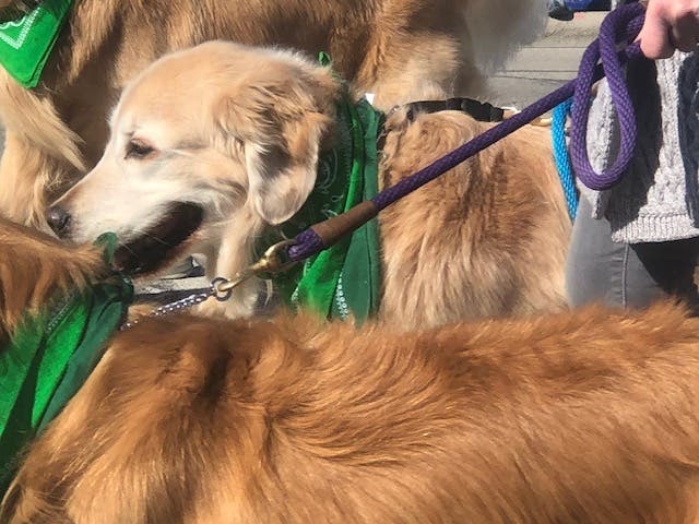And there was no shortage of dogs, from rescue Collies clad in bright green scarves to massive Irish wolfhounds and energetic pups who just wanted to march with their owners, the parade's dozens of dogs were definitely a crowd favorite.