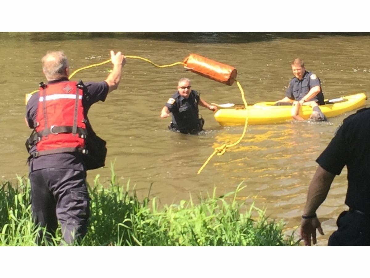 "Officer Donofrio quickly entered the river in the kayak and was able to catch up to the subject, who had now drifted south approaching the Gartner Avenue bridge," Kammerer said. Donofrio was able to grab the man and began pulling him towards shore, where Porus entered the water and helped Donofrio pull the man to safety, police said.